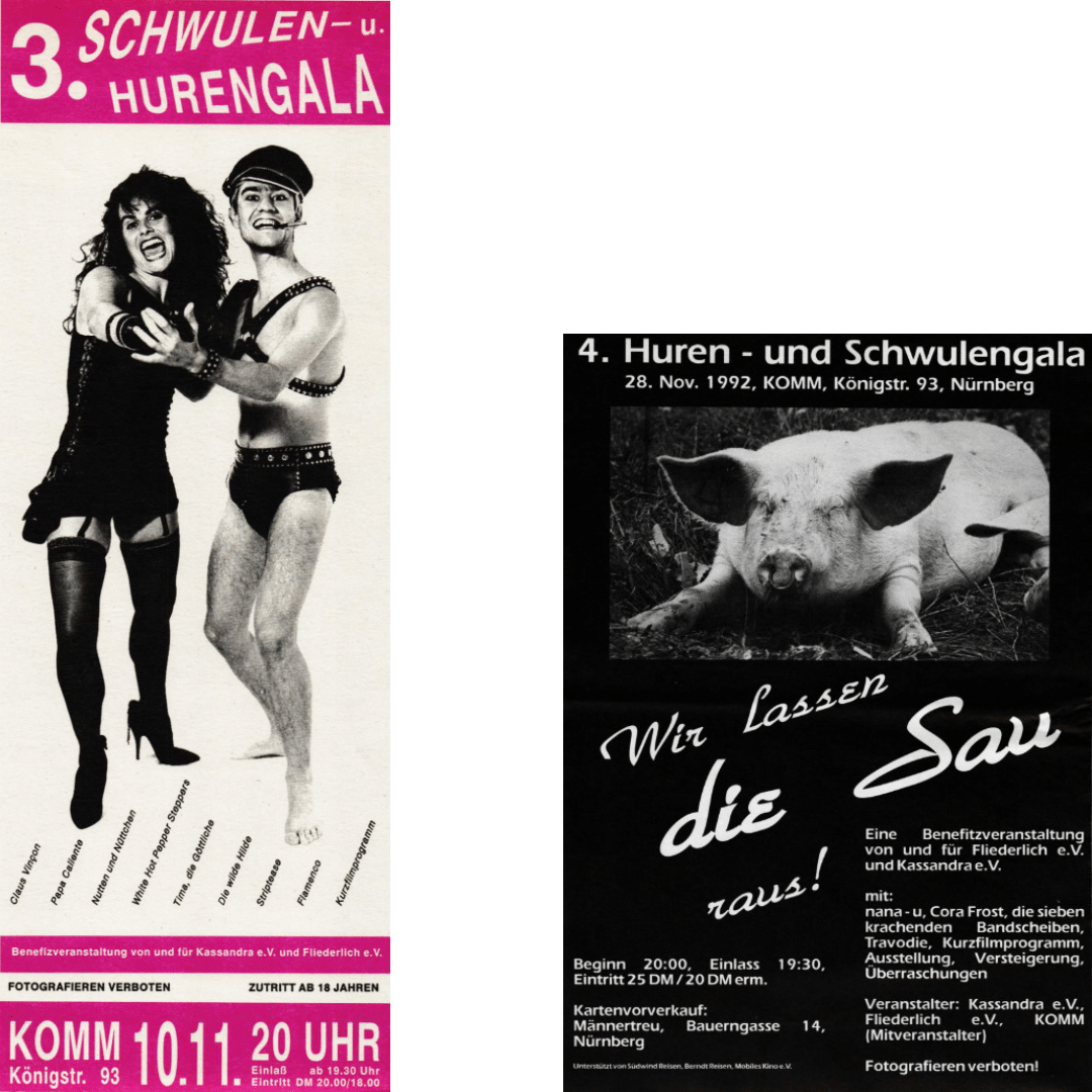 Erfolgreich aus der Not heraus: 1988 untersagte die CSU-geführte Bezirksregierung Mittelfranken der von der SPD dominierten Stadt Nürnberg, die Vereine Fliederlich, Kassandra und Rosa Flieder finanziell zu fördern. Für Selbsthilfe, Beratung und Aufklärung zu den Themen Homosexualität und Prostitution sollten nach Ansicht der konservativen Moralwächter keine öffentlichen Mittel fließen. Auch wenn die Stadt Nürnberg Jahre später vor Gericht Recht bekam: Das plötzliche Loch in den Vereinskassen musste schnell gestopft werden.