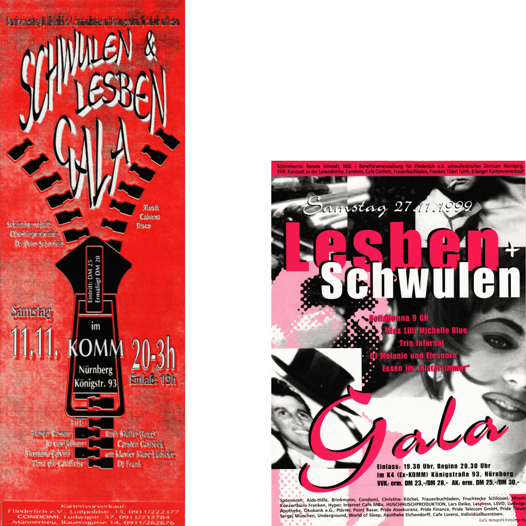 Die ausverkaufte Veranstaltung mit Benefiz-Tombola wurde ein voller Erfolg. Auch bei der ersten Wiederholung 1989 im Erlanger »E-Werk« war der Saal proppenvoll. Sogar die Erlanger Nachrichten berichteten mit voyeuristischem Eifer über das »bizarre Fest« und »dem Mann in schwarzem Leder, der seinen nackten Oberkörper mit Gurtwerk verzierte […]«. Weitere erfolgreiche Schwulen- und Hurengalas fanden 1990 und 1992 wieder im »Komm« statt, zuletzt mit fast 700 Gästen.